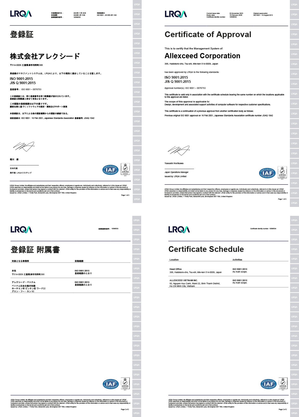 - 初回登録:2001年2月16日(ISO 9001:2000/JIS Q 9001:2000)
