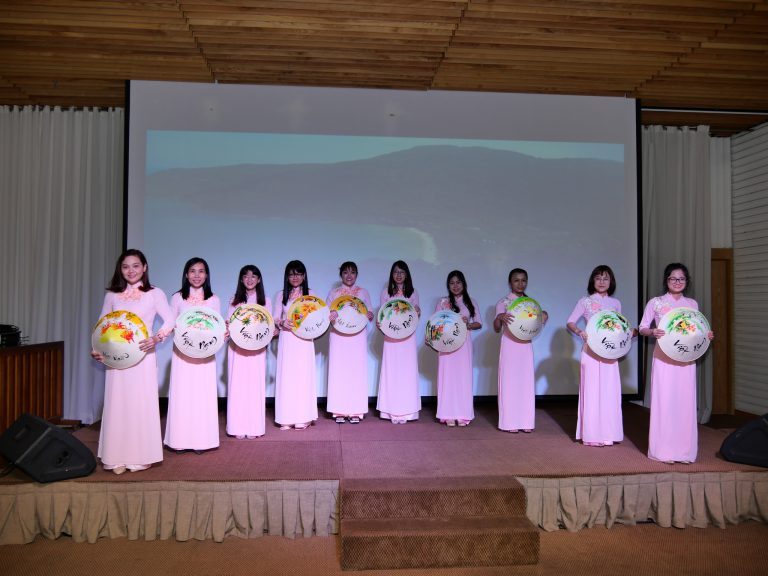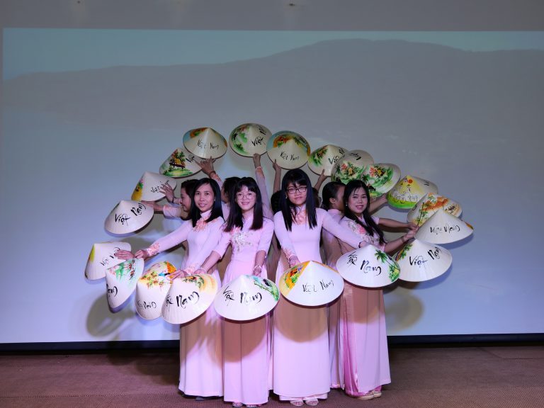 パーティー開催に先立ち、女子社員よるベトナムの伝統的な踊りを披露させて頂きました。