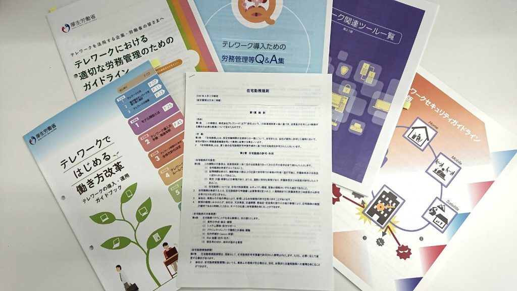 当社の在宅勤務規則とその制度を構築する際に参考にした厚生労働省・総務省から発行されているガイドブックなどです。